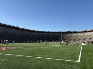 CAMBRIDGE – By 7:35, 7:40ish on what was a December-like Saturday morning, Harvard players were trickling out on the field inside the historic stadium.