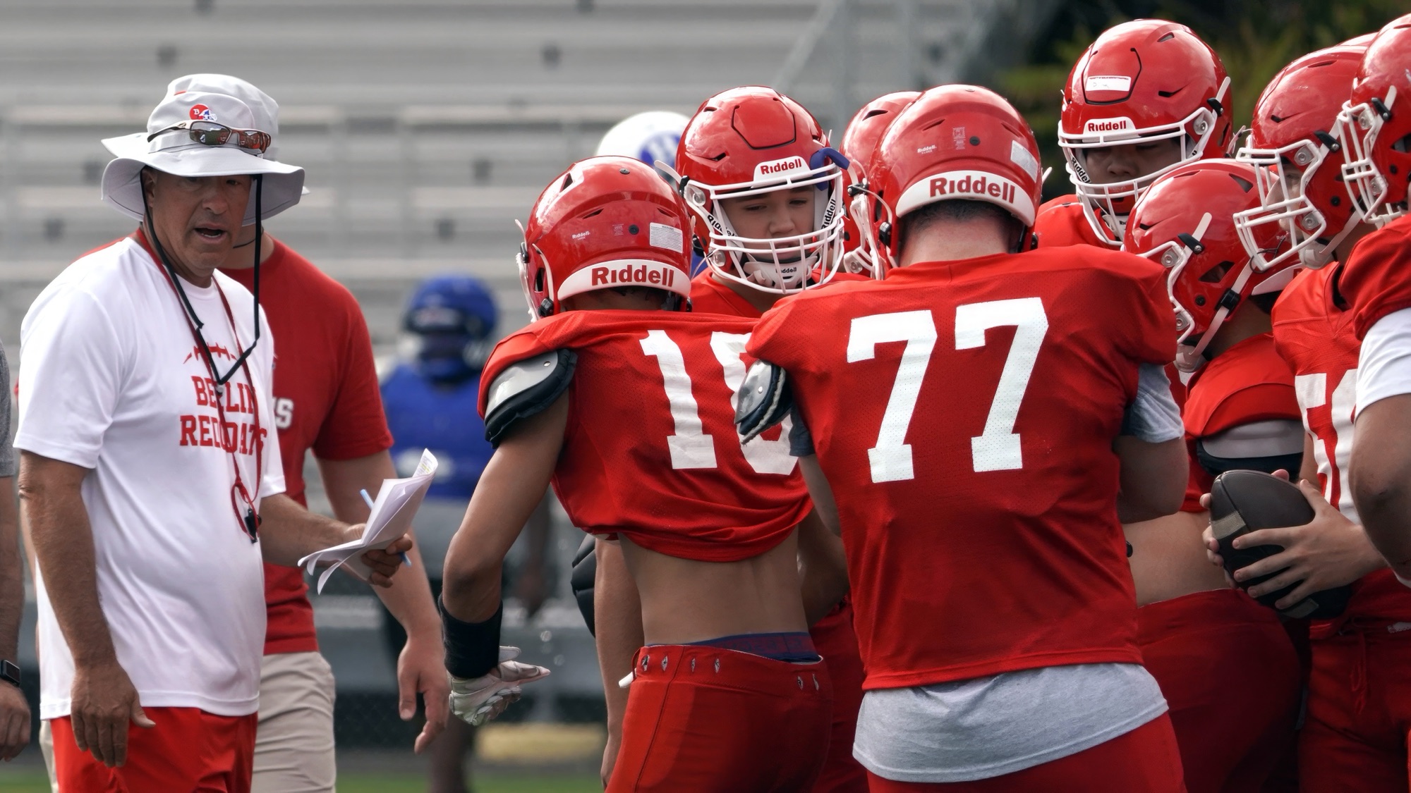 Berlin football coach John Capodice directs his team during a summer scrimmage against the Hall Titans.