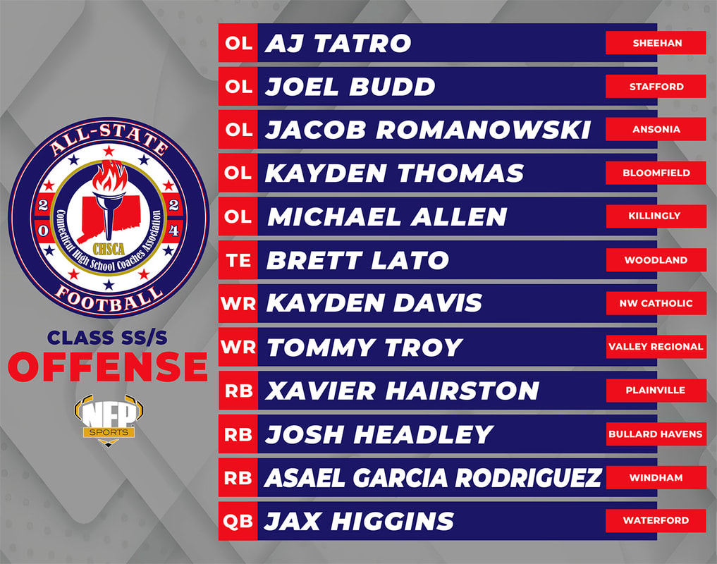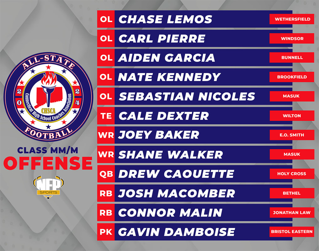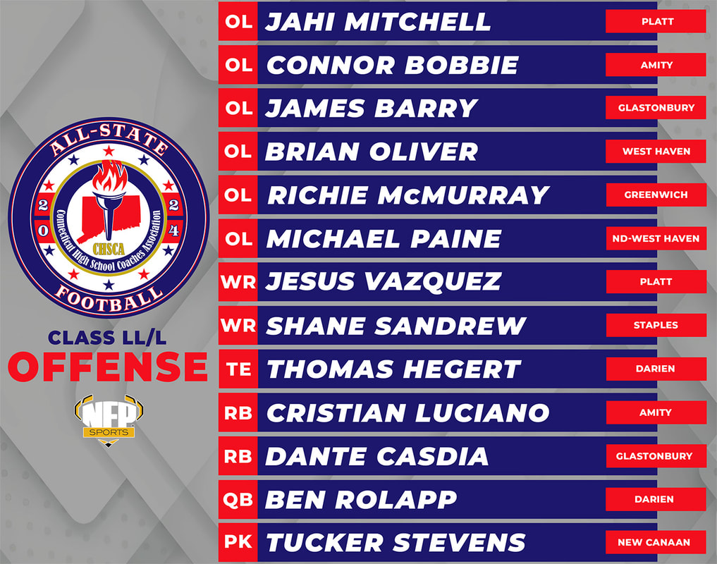 The CHSCA  announced on Monday their 2024 All-State team and their All-Class teams. The All-State team features the 27 best players in Connecticut and some of the best talent in New England. Several players have Division One offers.